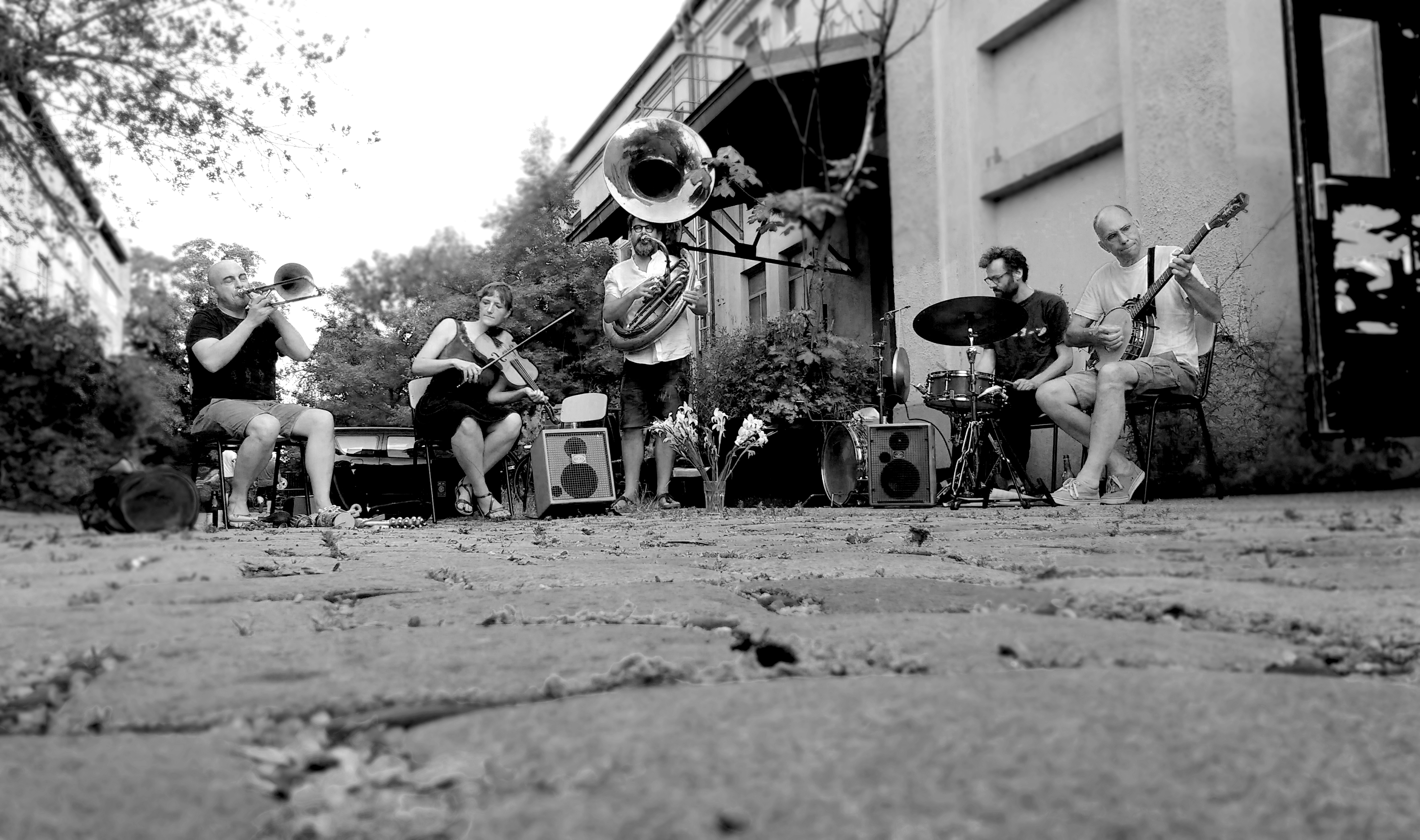 Folkloristisch-elegischer Rumpeljazz… so nennen die Mitglieder der Hochzeitskapelle ihre Musik. Anlässlich einer Eheschließung 2012 gegründet, kommen die fünf Musiker stilistisch teils aus sehr unterschiedlichen Ecken. Sie machen mit zwischen München, New Orleans und Trinidad gefundenen Lieblingsstücken das, wofür die Musik wohl ursprünglich geschaffen wurde: SPIELEN im besten Wortsinn, und das mit großer Intensität, Vertrautheit und Freude.