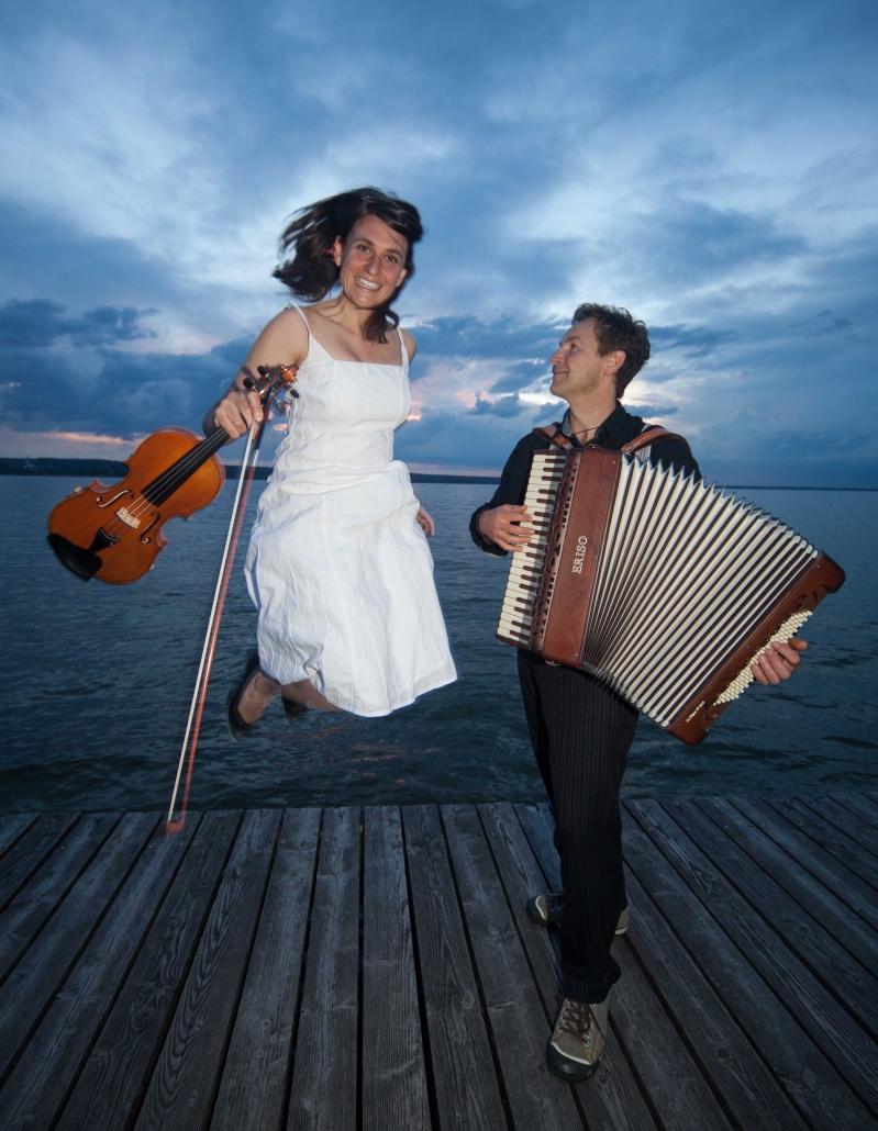 Groovig, spritzig, frech und innig ergreifend – so präsentieren Marie – Josephine Melchior (Violine, Gesang) und Johann Zeller (Akkordeon, Gesang) eine erstaunliche Bandbreite an Weltmusik: Valse, Musette, Tango, Czardas, Tradimix … alles wird zum frisch servierten Ohrenschmaus.