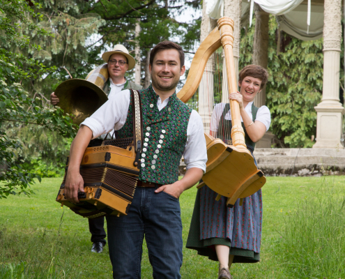 Von allen Musikinstrumenten steht die diatonische Harmonika, auch steirische Harmonika, Ziach, oder eben Quetschen genannt, musikalisch wie auch namengebend im Zentrum des Trios – von ihr werden die melodischen Zutaten geliefert während Blechbass und Harfe die nahrhaften Grundlagen und den rhythmischen Zuckerstreusel beisteuern. Guten Appetit!