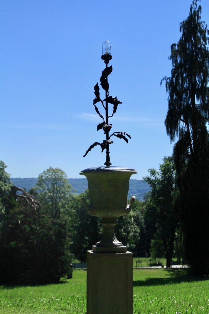 Vor 100 Jahren hat auch der Freiherr in seinem Park viel über die damaligen Neuigkeiten nachgedacht, und sich sogleich die neue Technik des elektrischen Stroms zunutze gemacht. Nachdem sich sein „Arbeitgeber“ König Ludwig II in einer elektrisch beleuchteten Kutsche durch die Lande ziehen ließ, wollte auch Ludwig von Schacky mit dieser leuchtenden Technik imponieren. Deshalb ließ er sein Dießener Gartenreich mit aufwändig gestalteten Lampen ausstatten und freute sich an dieser nächtlich beleuchteten Romantik.