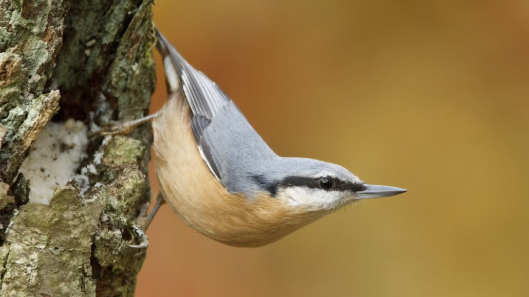 Der Kleiber kann mit dem Kopf nach unten an Baumstämmen herumklettern.(Foto: Rosl Roessner/LBV)